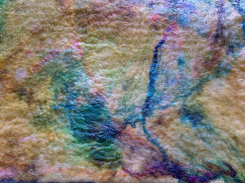 First I made a pre-felt with hand dyed silkworm silk applied to the surface.