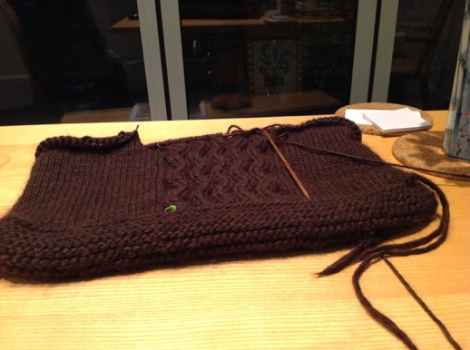 It isn’t really intended as a felting wool. Strictly speaking it is too good for that I wanted the sheen to really bring out the texture of the cables which snake up the front of this design.