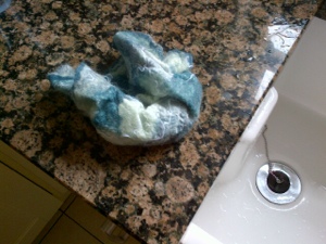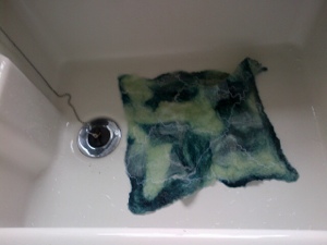 - after a while your work will begin to shrink and a slightly bubbled fabric will form and this is early pre-felt