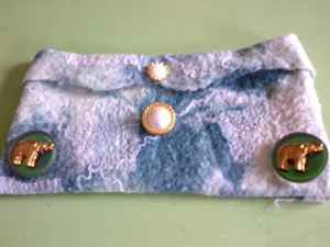 Felt is not difficult to make at home. It does not require expensive equipment and it can be turned to all sorts of purposes and decorated, embellished, reshaped or retextured in many ways. It can then be made into jewellery, bags, clothes, slippers, decorative pieces and three dimensional, and household, objects. For the textiles artist it is an endless source of fascination.